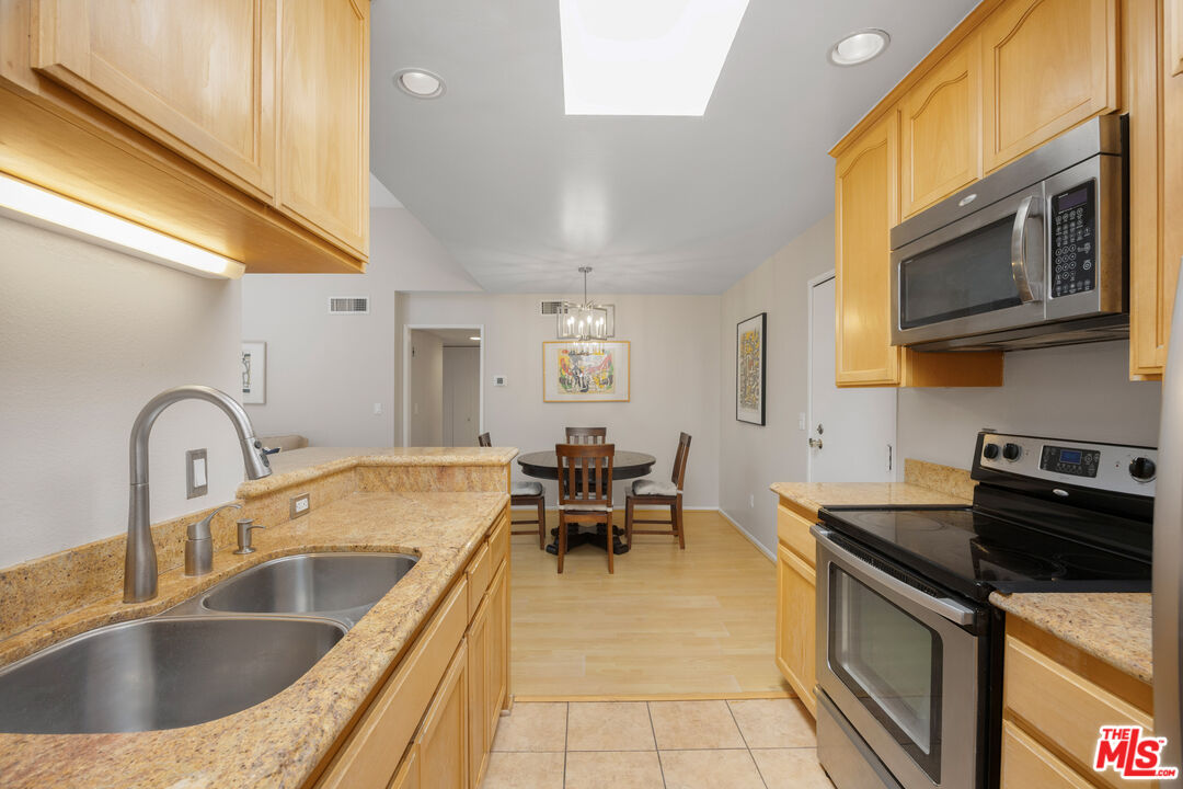 Set within the desirable enclave of Monterey Hills, this updated top floor 2 bedroom, 2 bathroom residence in Austin Terrace offers a bright and airy living environment with thoughtful updates and architectural character throughout. Cathedral ceilings, clerestory windows, and abundant natural light create a sense of volume and openness, while laminate flooring provides a clean, modern finish. A beautifully tiled fireplace serves as a focal point in the living room, adding warmth and visual interest.The split bedroom layout offers functional separation and privacy. Skylights and expansive windows enhance the interior, bringing in natural light throughout the day. The living room opens to an oversized private balcony, providing an ideal space for outdoor seating and enjoyment.The galley style kitchen features a large skylight, along with a formal dining area and breakfast bar, offering flexibility for both everyday use and entertaining.Community amenities at Austin Terrace include a private pool, spa, and sundeck area with expansive views. HOA dues include earthquake insurance. Buyer to verify all HOA inclusions, rules, and amenities.Conveniently located near Downtown Los Angeles, Old Town Pasadena, Highland Park, and the Figueroa corridor, with access to dining, shopping, and entertainment. Additional nearby destinations include Paseo Colorado and the USC Health Sciences Campus.
